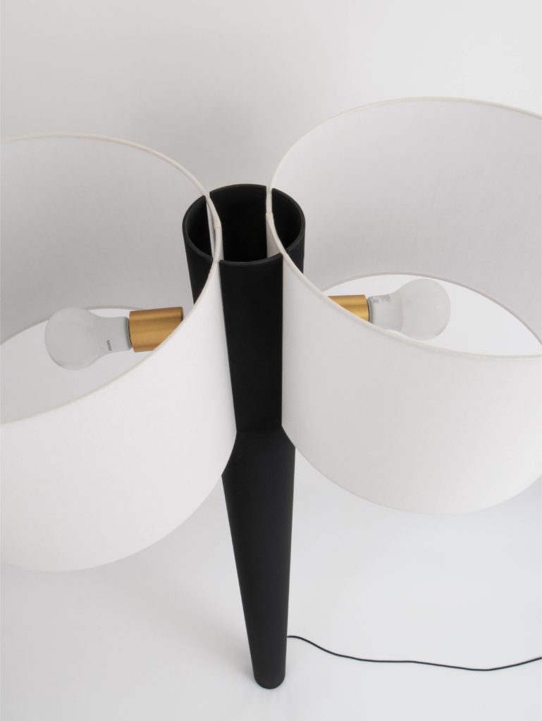 Lampadaire recouvert d’une peinture spéciale noir mat absolu.